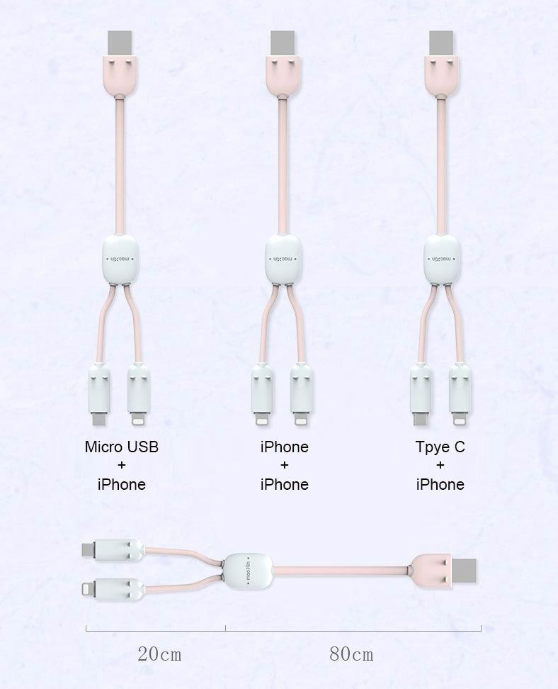 • 2-in-1 design (iPhone + Type C / iPhone + Micro USB / iPhone + iPhone)